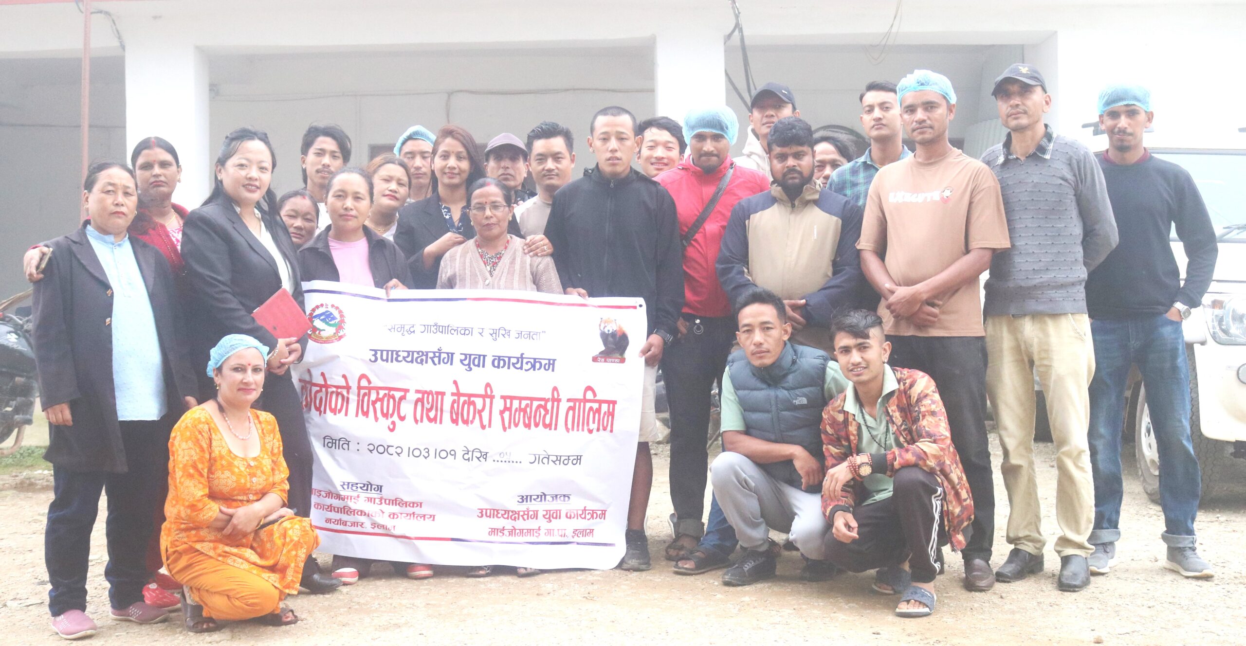 माईजोगमाई गाउँपालिकाको केन्द्र नयाँबजारमा गत असार १ गतेबाट ५ गतेसम्म संचालन भएको तालिममा कोदोको बिस्कुट तथा बिभिन्न बेकरी सम्बन्धी तालिम प्रदान गरिएको थियो ।