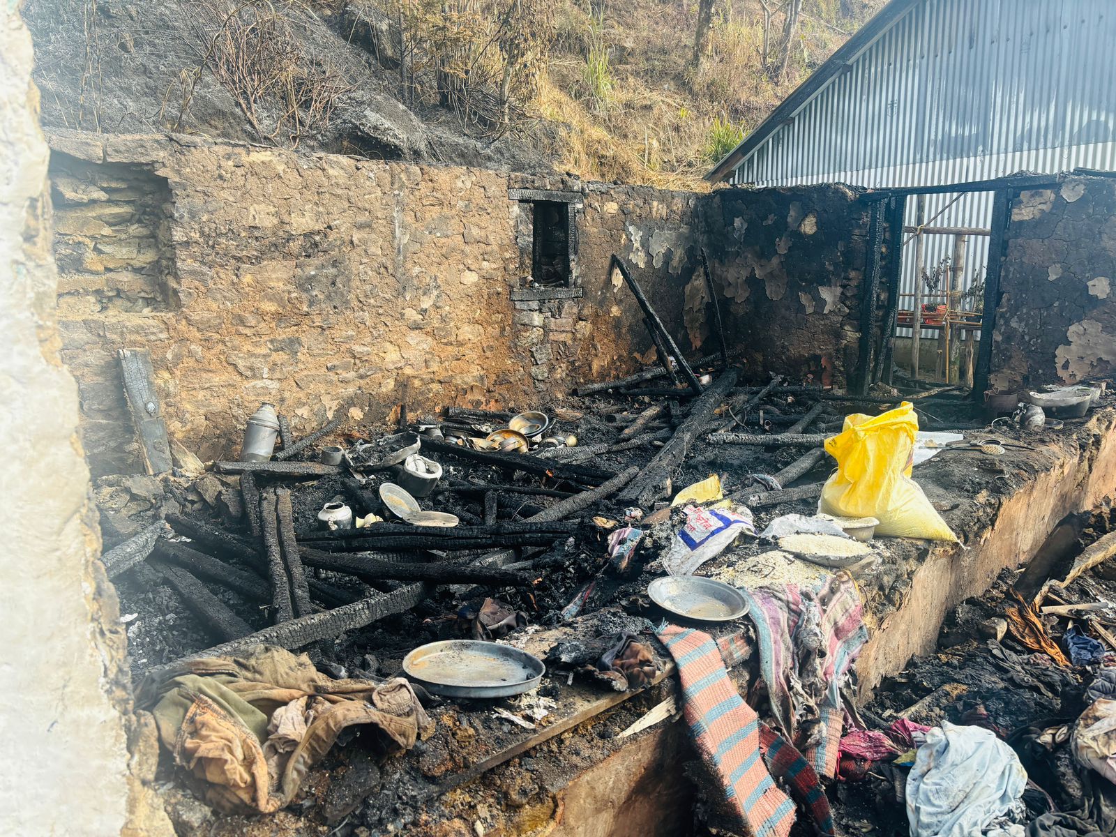 माइजोगमाई एक मलुमझुवा ( नयाँबजार प्याङ सडक अन्तरगत तारेभिर देखि केही पर बाटो मास्थिर) (दाछिरि तामाङ) गोले कान्छाको घरमा हिजो बेलुकाको समयमा आगलागी भई एक घर पूर्ण रूपमा जलेर नष्ट भएको छ ।